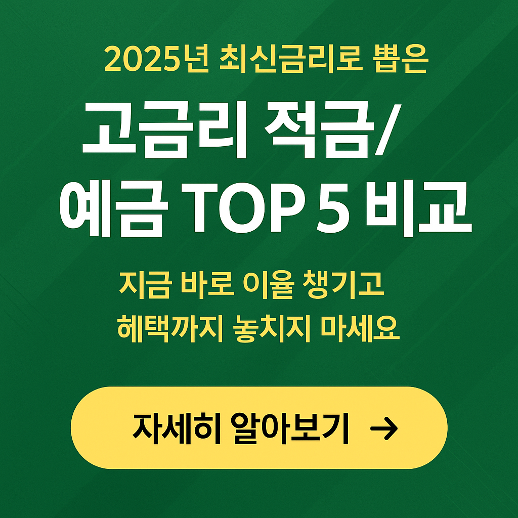• 2025년 최신금리로 보는 고금리 적금·예금 TOP 5 비교와 예금자보호 1억원 활용법
